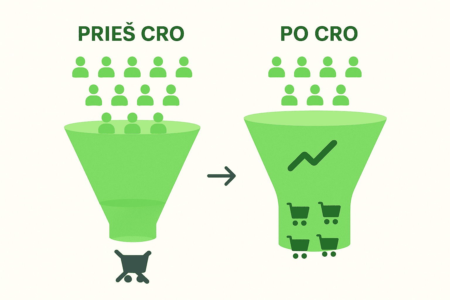 Konversijų optimizavimas (CRO) – tai metodų ir priemonių visuma, padedanti padidinti internetinės parduotuvės lankytojų atliekamų konversijų (pvz., pirkimų) skaičių. Paprasčiau tariant, CRO siekia, kad iš to paties svetainės lankytojų srauto daugiau žmonių taptų jūsų klientais. Mažoms ir vidutinėms e. komercijos verslams Lietuvoje tai itin aktualu, nes reklamos biudžetai dažnai riboti – tad maksimaliai išnaudoti jau esamus lankytojus yra protinga strategija.