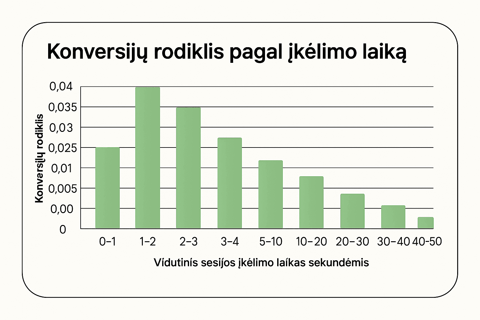 Konversijos rodikliai: Kiekviena 0,1 sekundės sutaupyta milisekundė gali padidinti pajamas maždaug 1 %. Vadinasi, kelių sekundžių optimizacija gali padidinti mėnesines pardavų pajamas keliais tūkstančiais eurų.